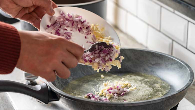 12. 把白酱搅拌均匀粘稠后关火备用。