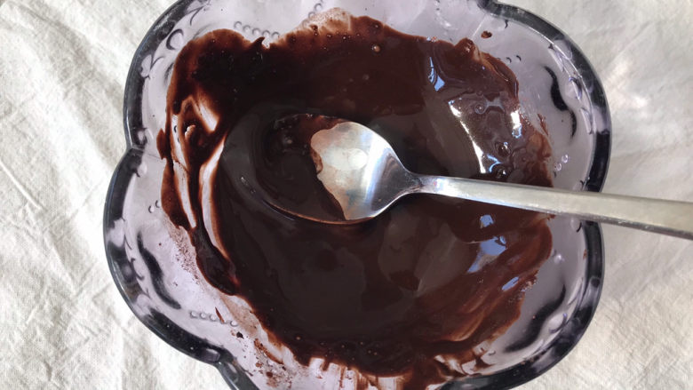5. 在4克可可粉中加入9克开水,调成糊糊