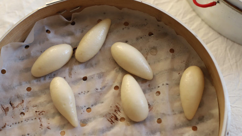 8. 等待面团发酵至原来的1.5倍大的时候,在蒸锅里加水,把发酵好的馒头放进去,用大火烧开后转为小火继续蒸10分钟就可以了。