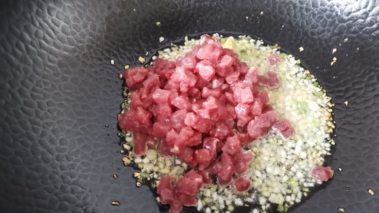 6. 热锅冷油,放葱姜蒜炒香,油尽量多点,不然会很干