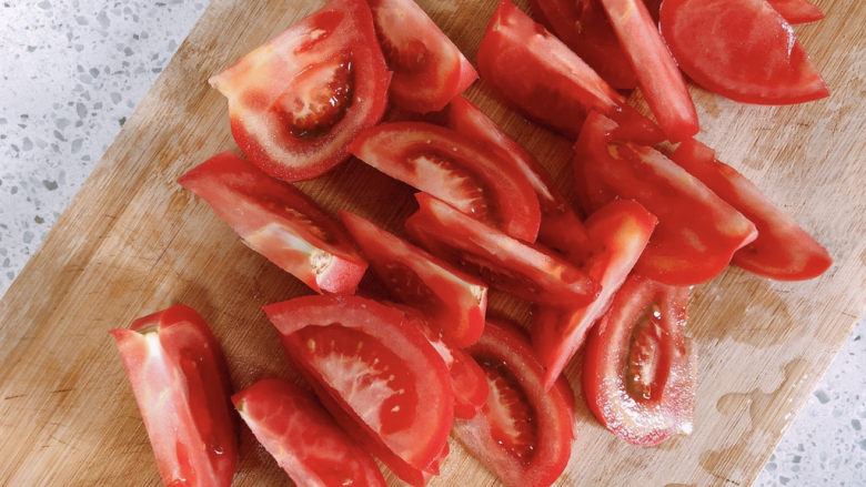 2. 番茄🍅洗净,切成片。