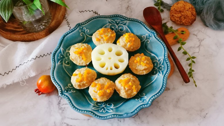 - 调味品全部放入莲藕肉馅中,蒸后即食,无需再加工。