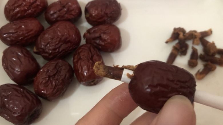 6. 用个硬点的吸管在红枣中间边旋转边推 核就出来了
