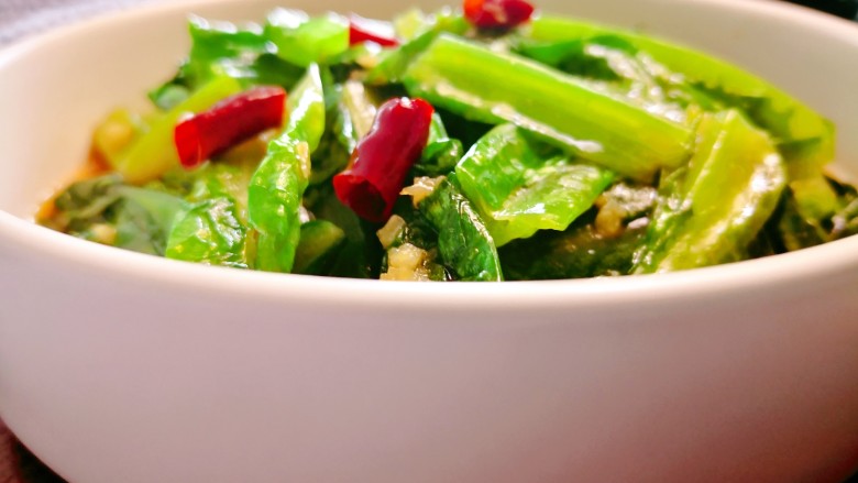 12. 热锅放油,放蒜末和干辣椒炒出香味