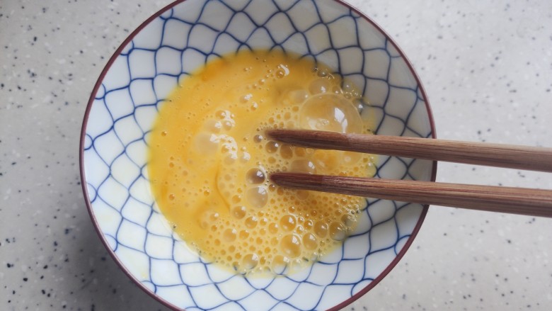 7. 鸡蛋磕入碗内,加少许细盐和少许料酒
