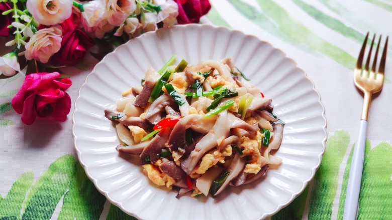 16. 加入平菇,翻炒30秒