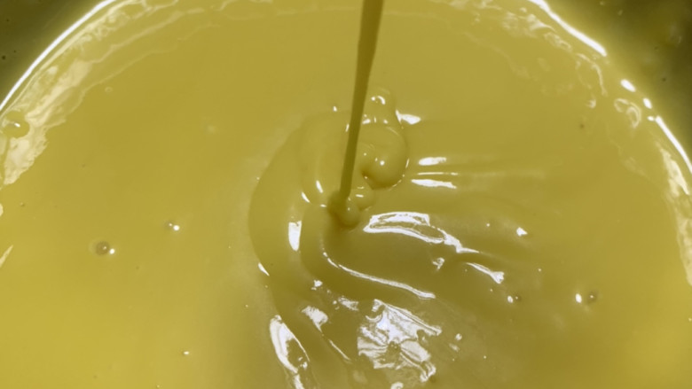 5. 蛋黄➕面糊里,用“Z”手法搅拌均匀。