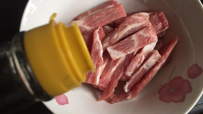 8. 下入里脊肉,煸炒至变色,盛出备用