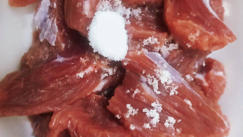 - 1⃣️牛肉提前腌制