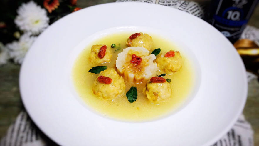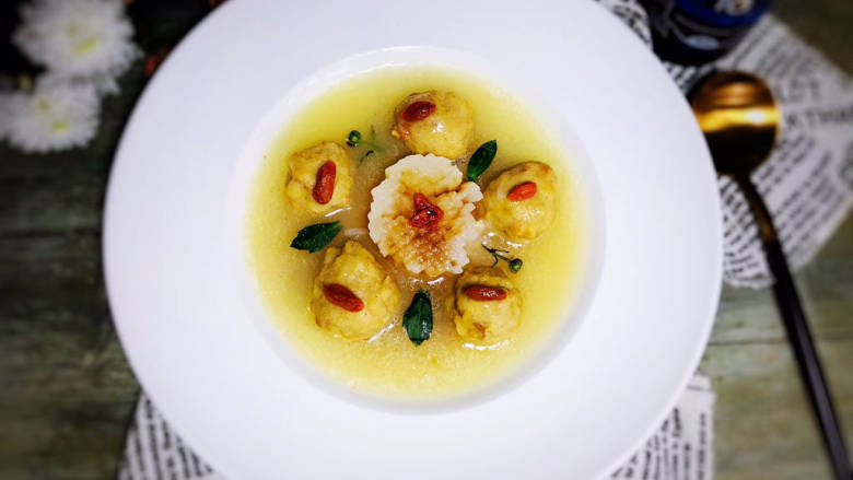 6. 放入菊花萝卜和肉丸子,煮沸后盖上锅盖,中火煮15分钟