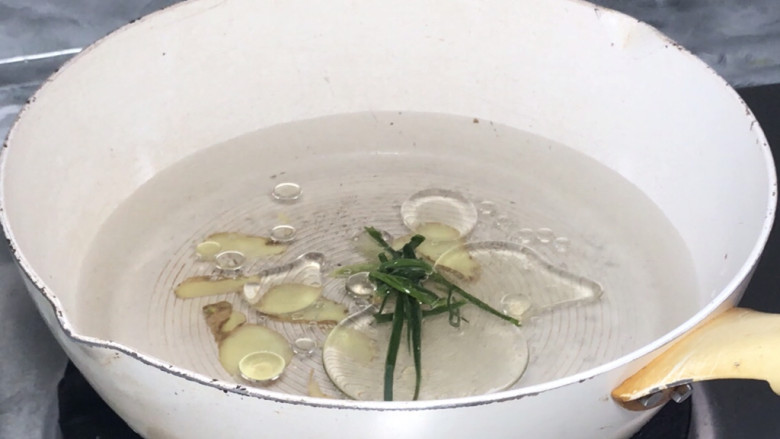 5. 起锅放入适量清水,放入葱姜、橄榄油烧开