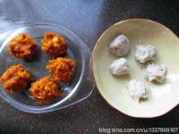 12. 将皮和馅均分成5份,我用50g的月饼模,2:8的皮馅比例:皮每个10g,馅每个40g