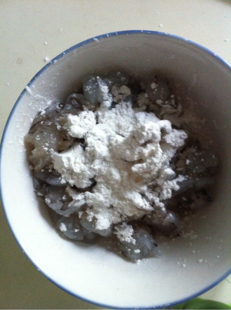 3. 将熟土豆按压成泥,与虾泥混合,加入胡椒粉,盐, 淀粉,搅拌均匀。