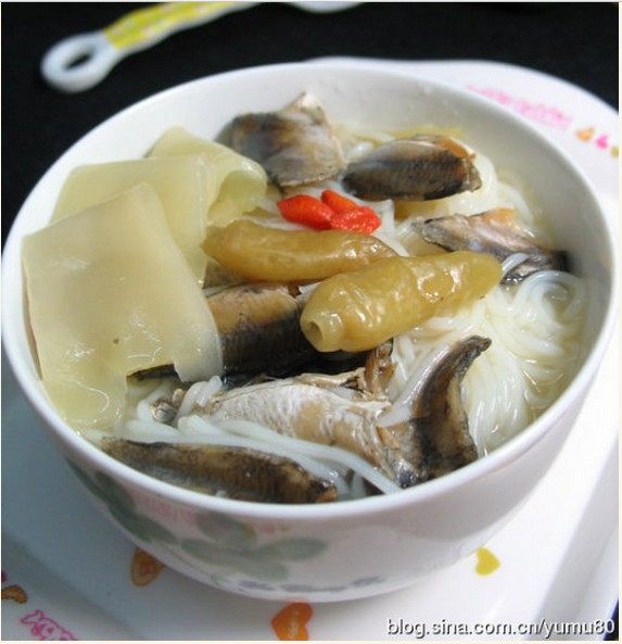 5. 加入粉丝,煮至粉丝变软后加入鸡精调味。