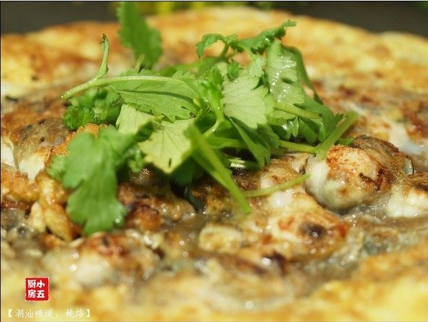 - 煎蚝烙时要讲究猛火厚油,才可以确保煎好的蚝烙外酥内嫩;另外,将蚝烙翻面也是技术活,我们找一平底盘,将整个锅翻面倒下,煎好的蚝烙在底面,重新将盘子反面平倒入锅中。