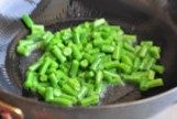 4. 热锅入油,开大火将四季豆爆炒一下,断生后盛出