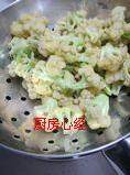 1. 油锅烧至五成热,下入菜花,炸至微黄,控净油备用