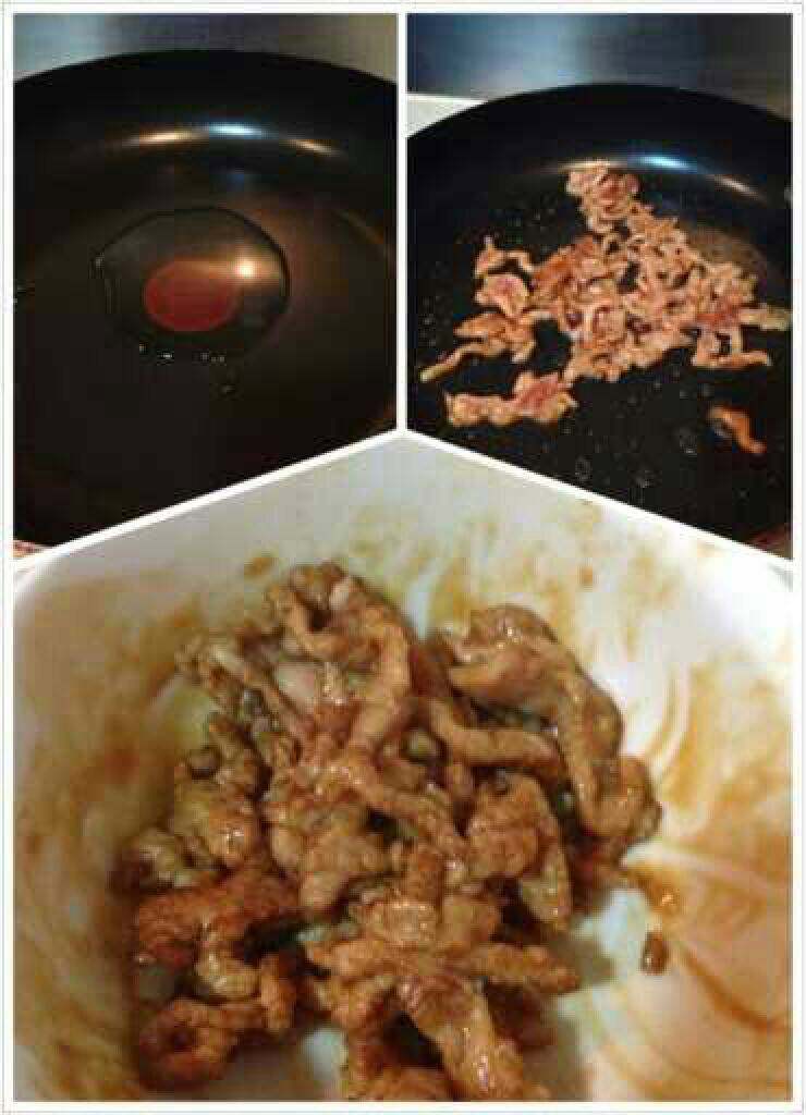 4. 热油下锅,将肉炒到半成熟,起锅