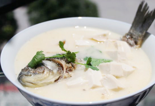 2. 鱼煎至两面略焦黄后,加料酒,再煎下,后倒600ML热开水,