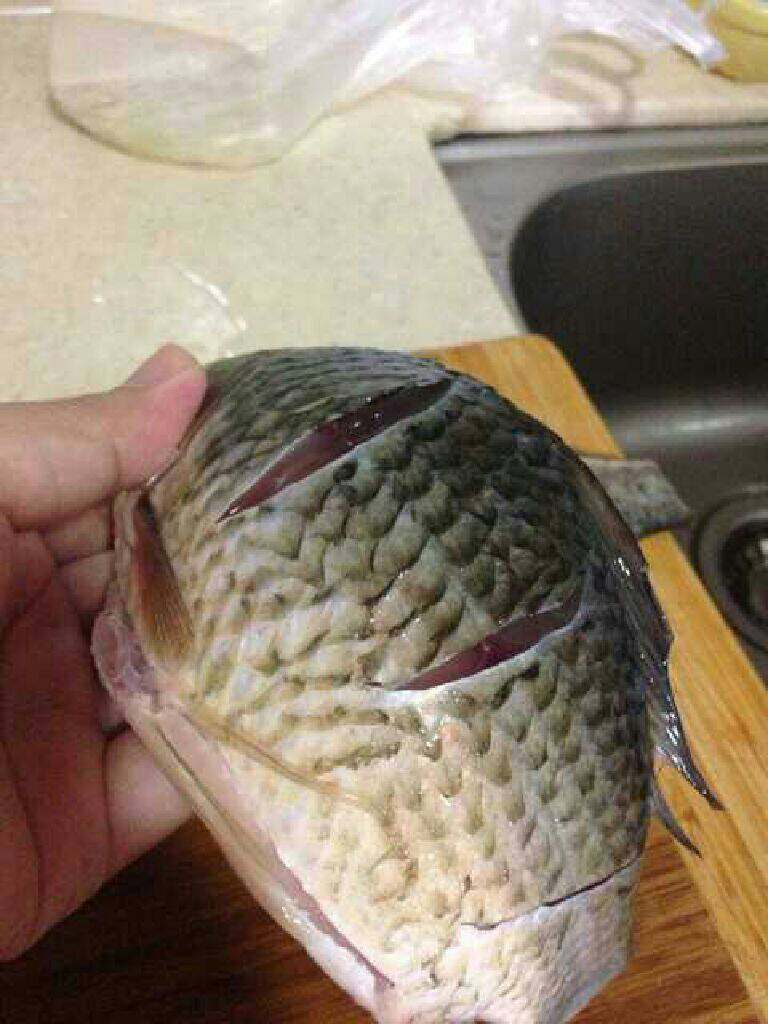 1. 热锅,倒油,放姜片,后放入鱼煎