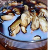 4. 捞出蛏子,取部分原汁水倒入碗里,再将作法3里的的酱汁兑入;