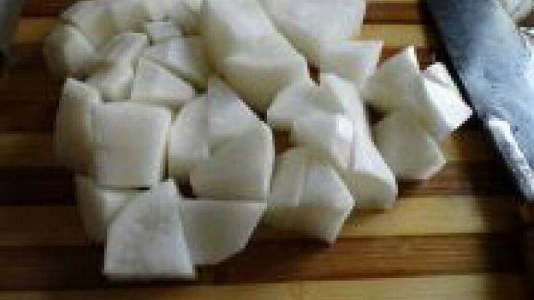 2. 锅里烧水开后把牛肉放进去焯一下水,捞出来。