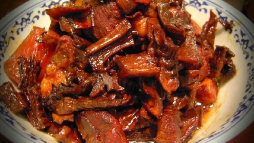 2. 锅内倒油,油热后下葱姜炒出香味后把肉放进去煸炒,炒出油后倒少许料酒去腥,然后倒老抽调色,翻炒均匀倒开水