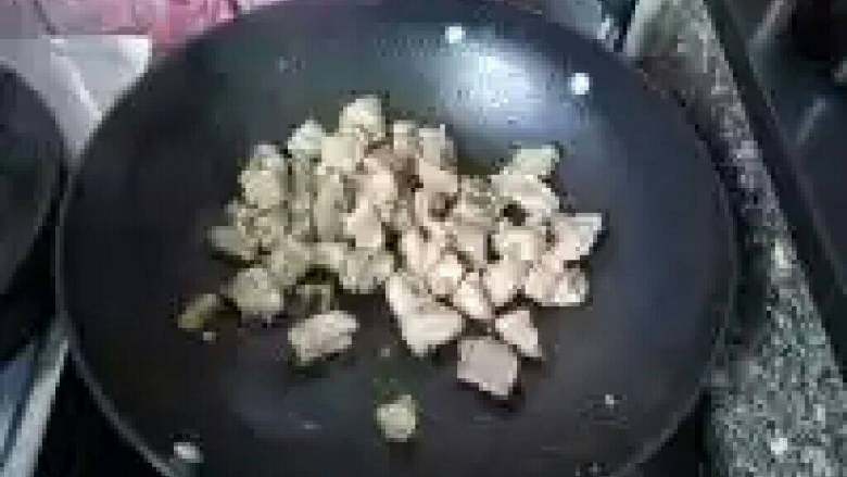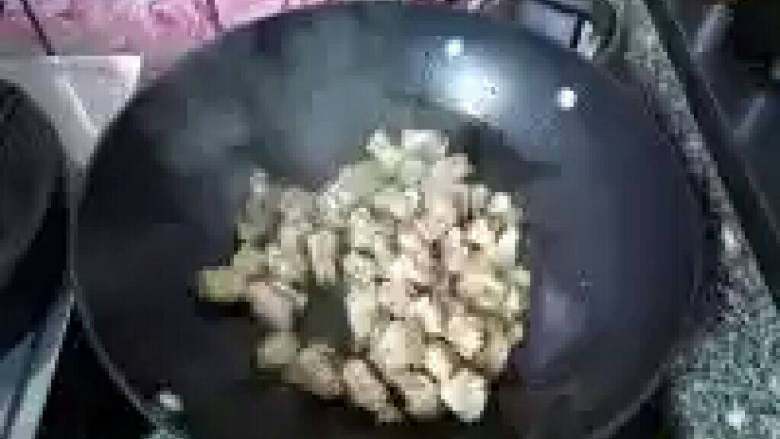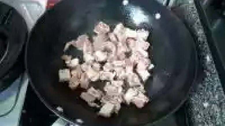 3. 排骨放锅内干锅煸炒。(锅内不放油)