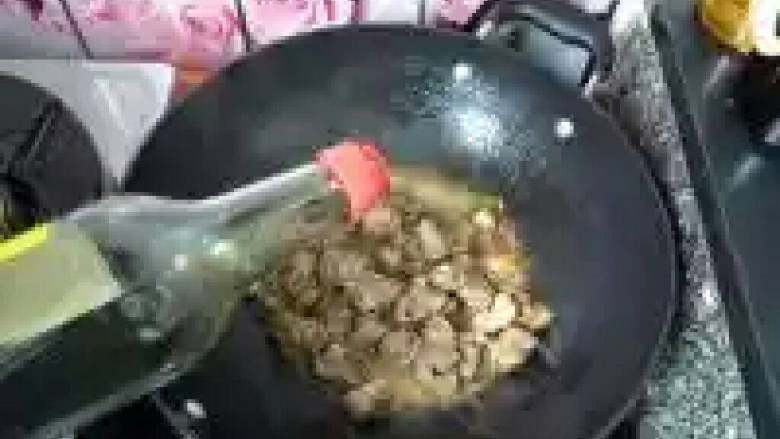 7. 加入少许白酒,将排骨煸炒出香味。