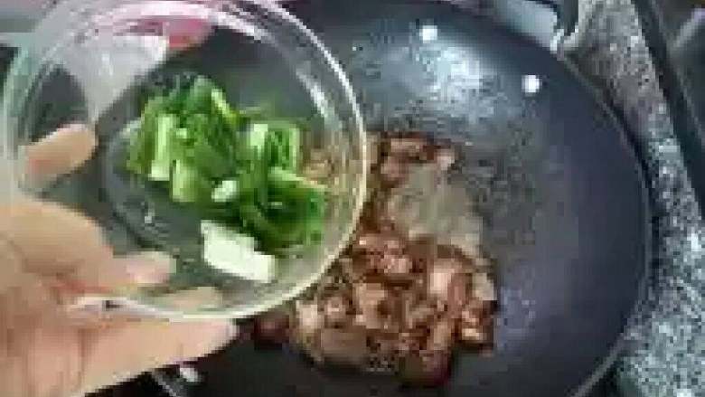 12. 焗至排骨汁变浓,加入葱段。
