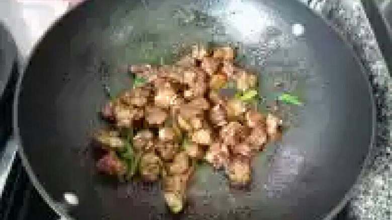 4. 煸炒至排骨水份收干,略出油,然后盛出。