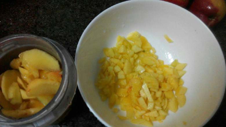 4. 一半切丁。一半放入料理机加入适量水打成果泥