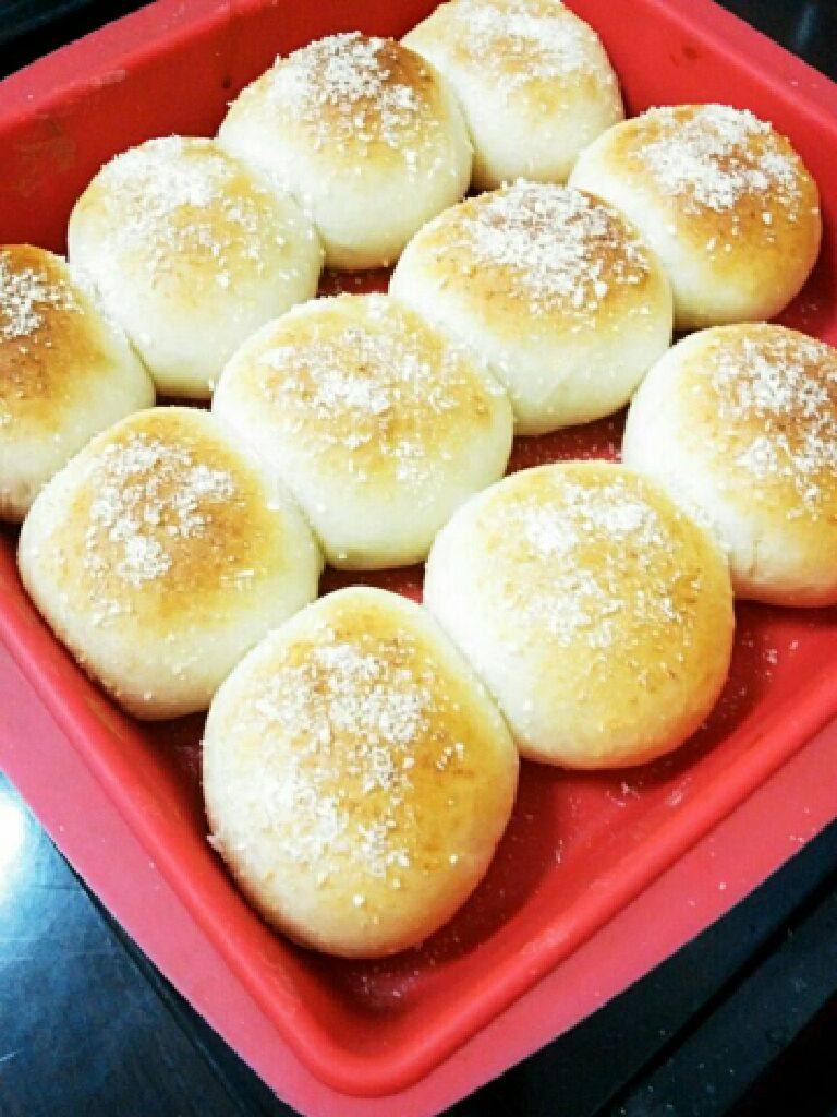 9. 发酵好的面团用羊毛刷刷上薄薄一层蛋液,撒上椰蓉,放入预热好的烤箱180度烤五分钟后加盖锡纸再烤十分钟即可